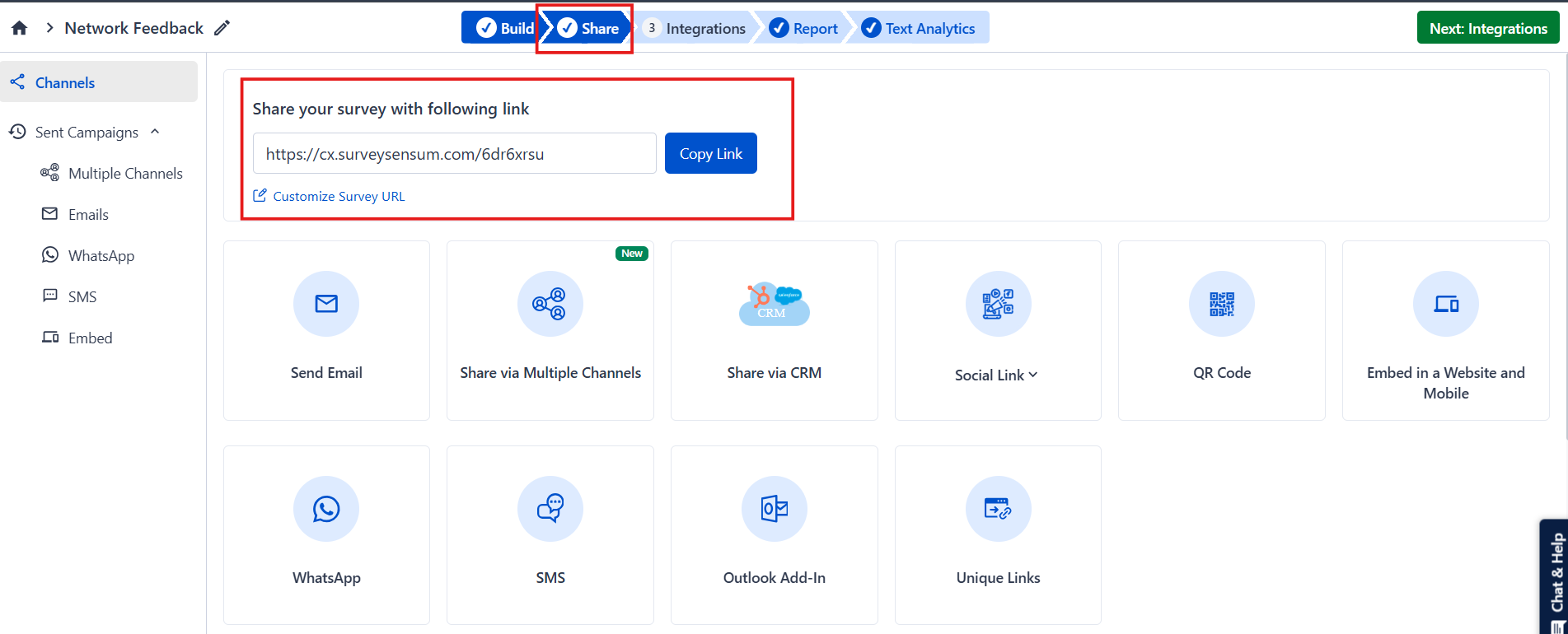 - Go to the Share Tab. Click on the Share option from the survey menu.