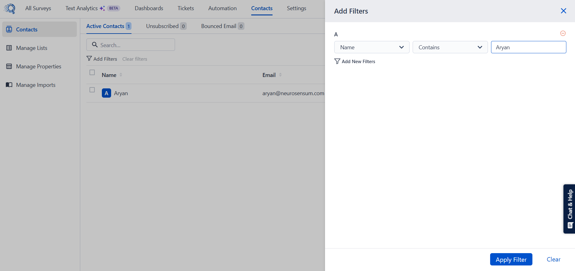 Add filters to narrow down contacts