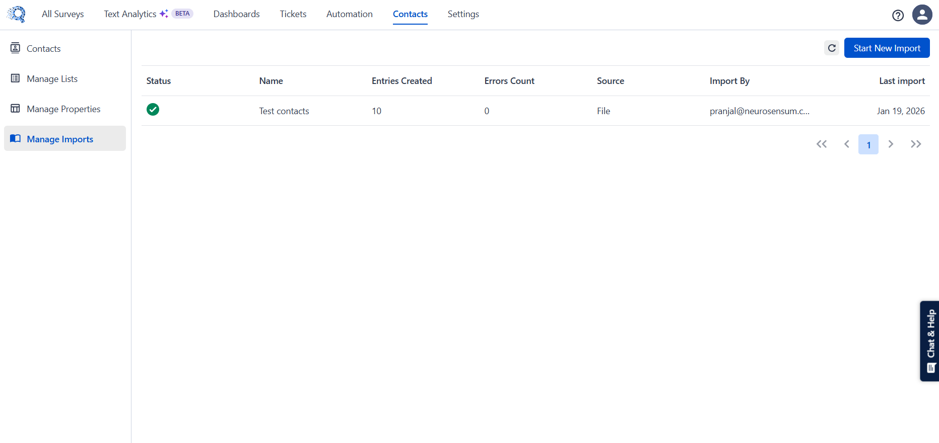 View previous contact imports