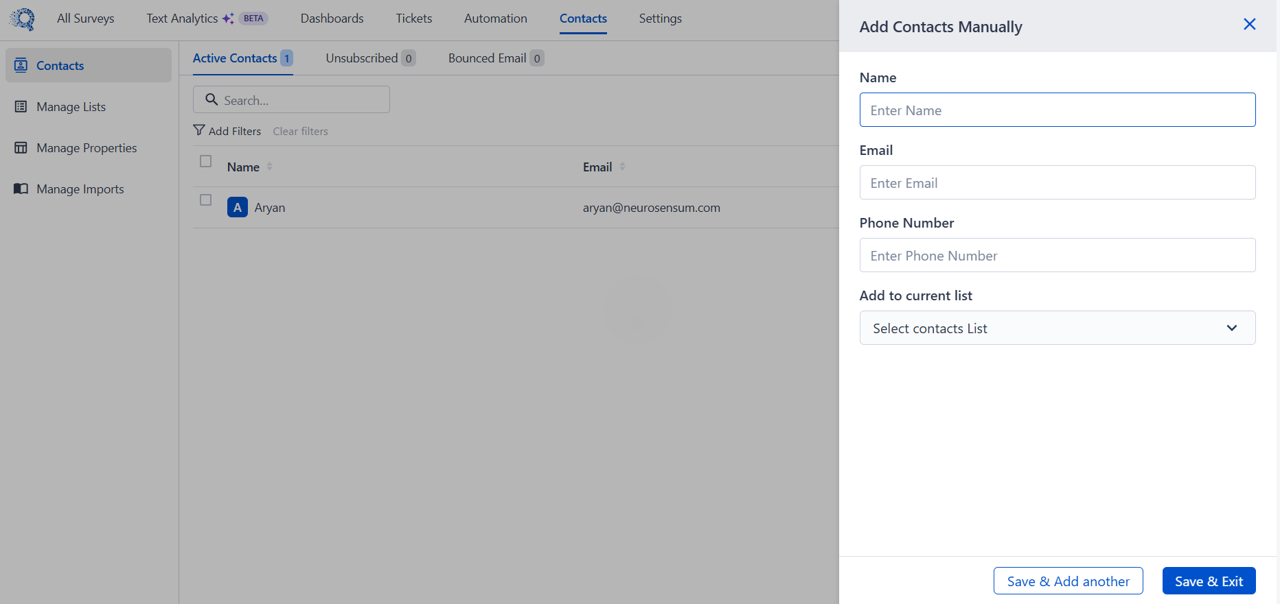 Click Add Contacts → Add Manually.