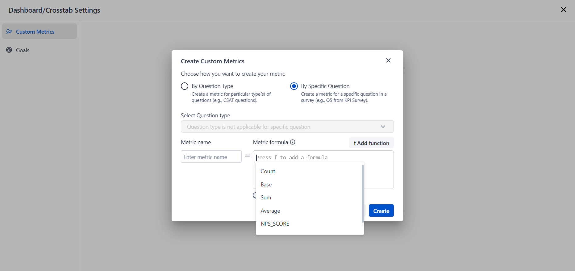 Click Select Question → Custom Metrics