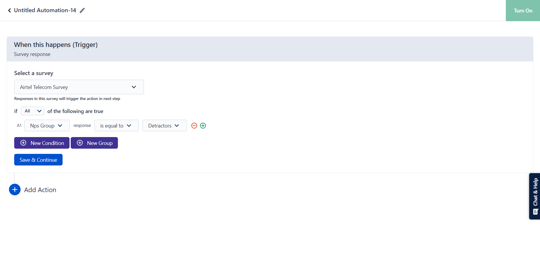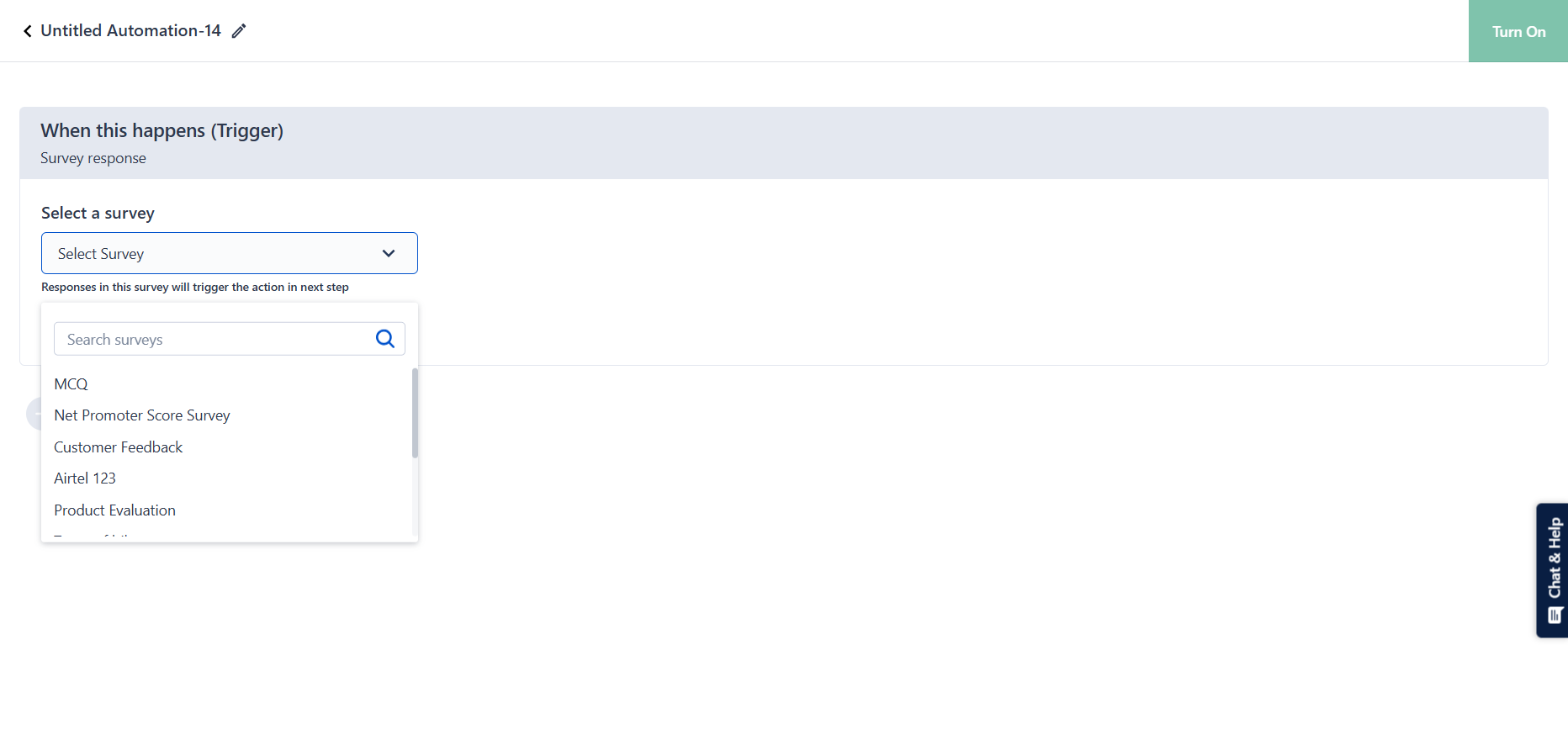 This trigger ensures that the automation runs whenever a survey response matches defined criteria.