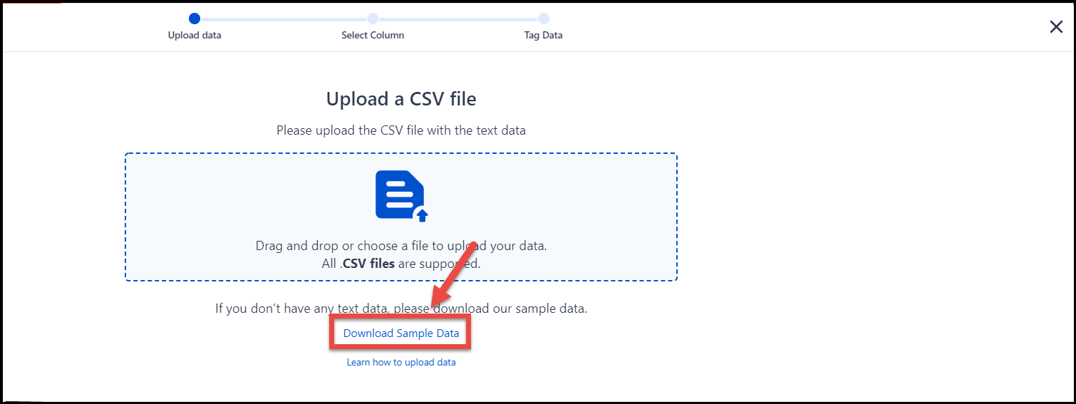 Click on Download Sample data hyperlink and text data will be downloaded in your system. Then upload the downloaded file and follow the next steps for doing text analytics.