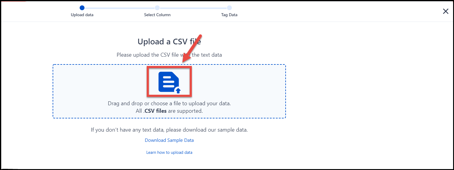 Before uploading data for doing text analytics, you need to collect your customer data in CSV format. The CSV file must contain text data coming from different sources. Sources can be Playstore/App store Reviews, Chats, Social Media comments, WhatsApp, Chatbots etc.