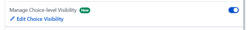When toggled ON, a link appears to open the Choice Visibility panel. This panel displays the full matrix grid and lets you hide specific answer options (columns) for specific rows. Click a cell to toggle its visibility.