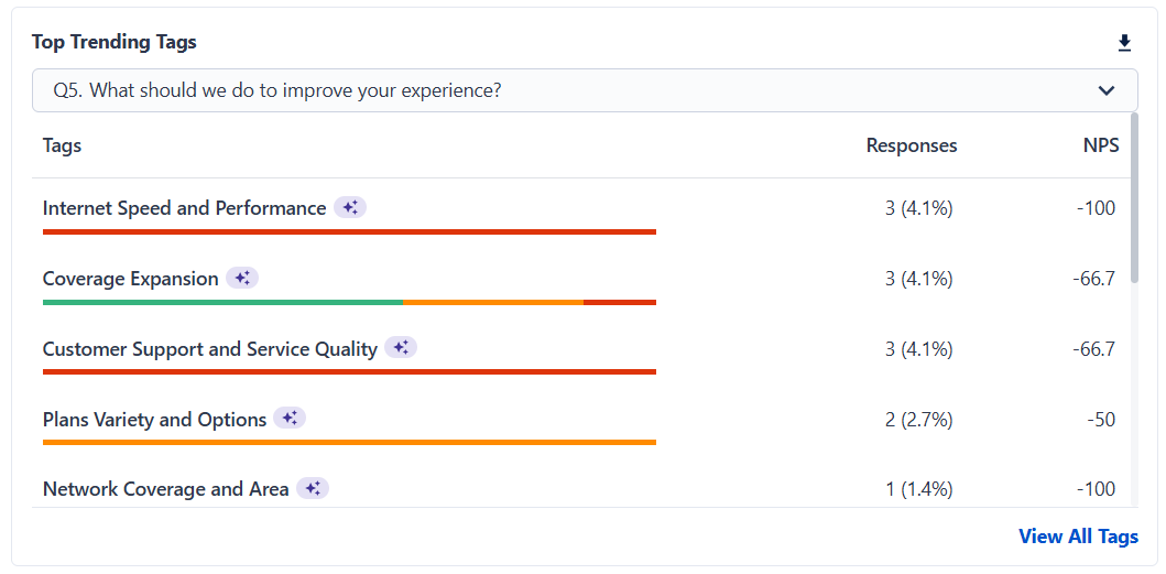 - Tag name (e.g., service, speed, support)