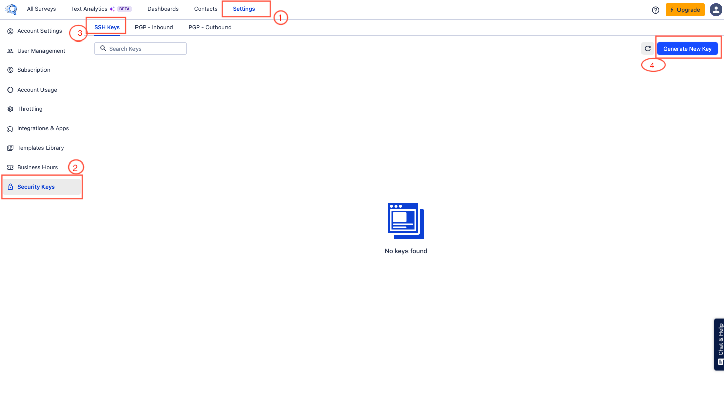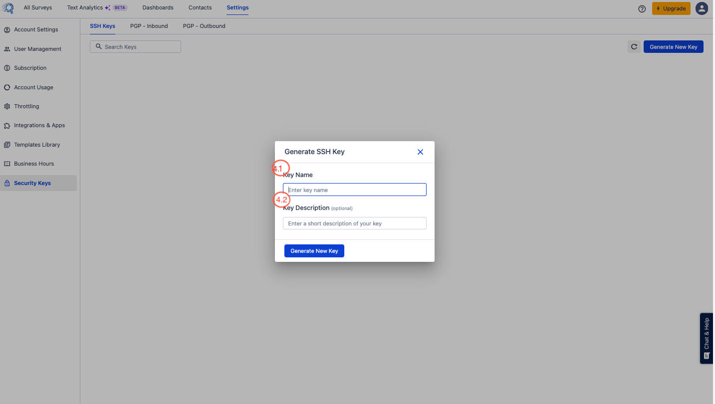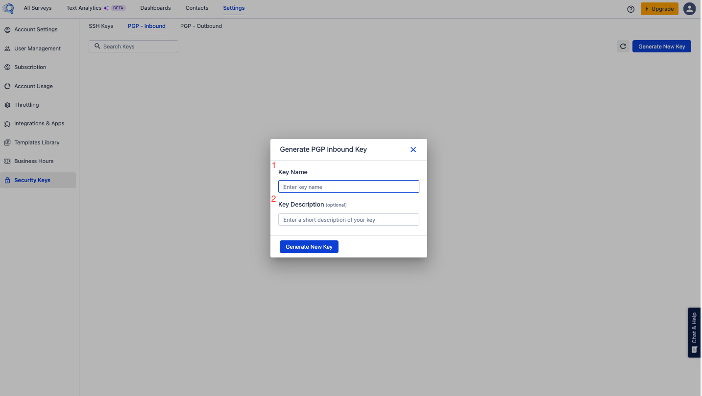 Follow these steps after log in to your SurveySensum account to navigate to the PGP Inbound Keys section: