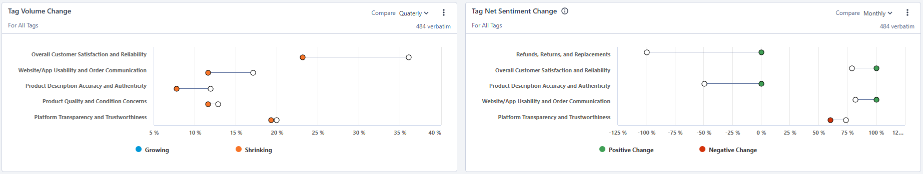 - Highlights which issues or positives are gaining or losing importance among customers.