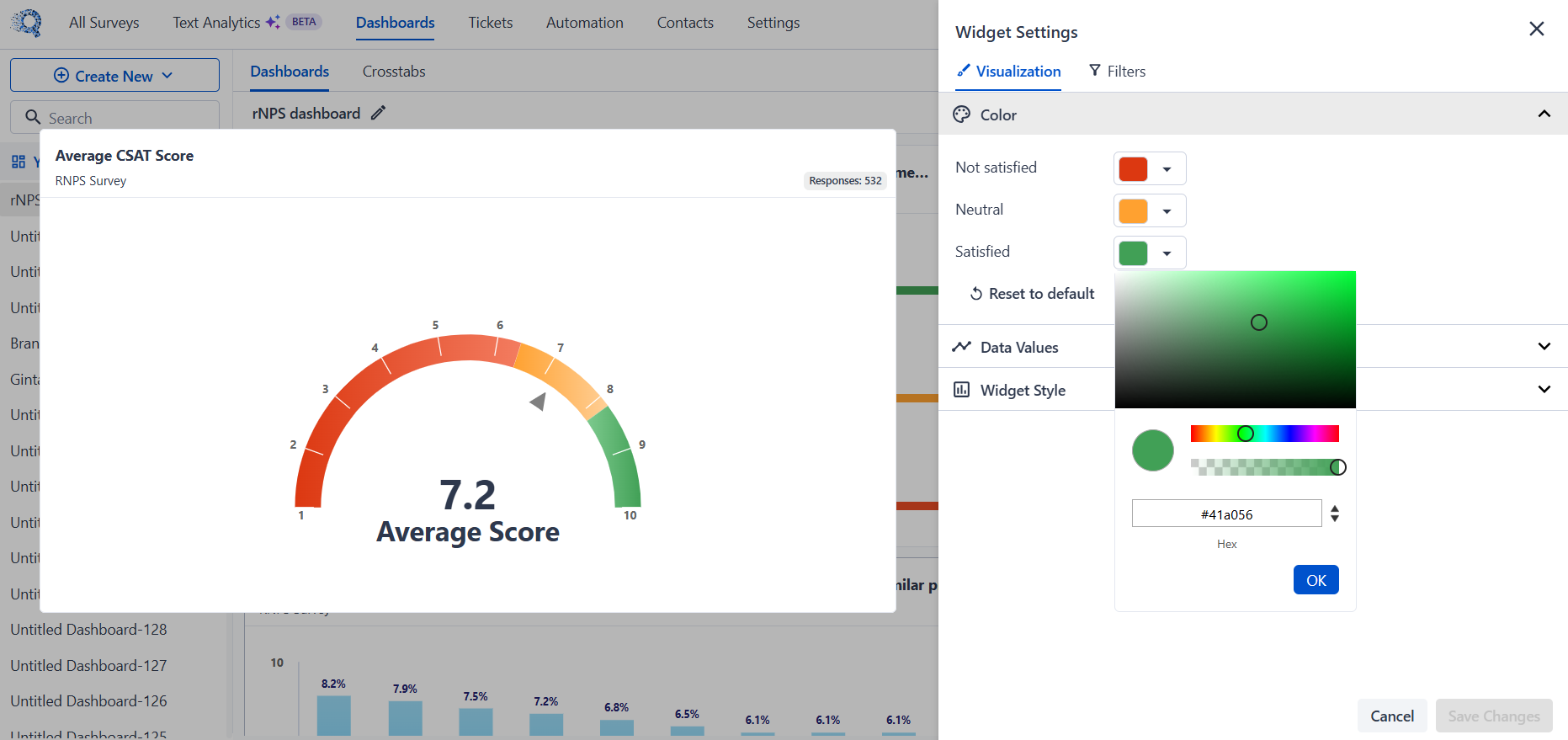 You can customize the colors used to represent different satisfaction levels.